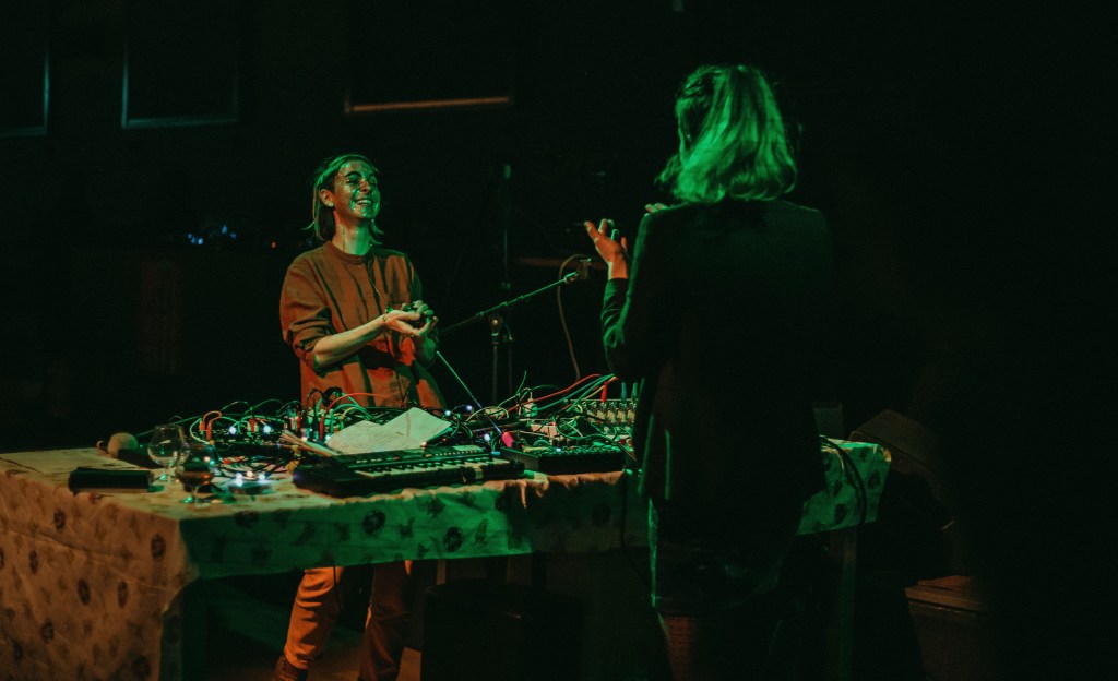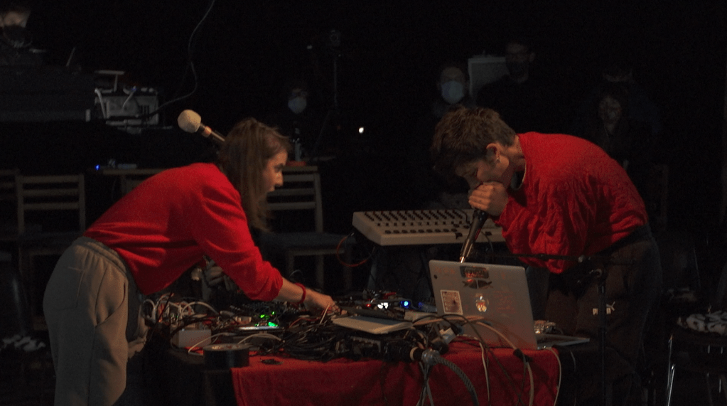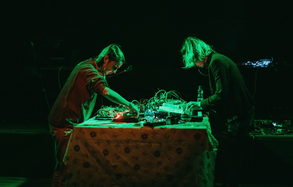 Deux projets expérimentaux suisses fusionnent pour une performance immersive dans l’intimité du bar du Nova. BIBLIOTEQ MDULAIR est une installation où Emma Souharce et Daniel Maszkowicz (membre du fort beau cinéma Spoutnik à Genève) manipulent une quinzaine de générateurs analogiques, engendrant une atmosphère électro-primitive sensorielle. Alors que SYNKIE, un écosystème analogique de manipulation vidéo par Michael Egger, Max Egger et F. Kaufmann, envoie sur de vieux téléviseurs à tube des images créées en direct. Le tout formant un laboratoire aux machineries audiovisuelles d’un autre espace-temps.