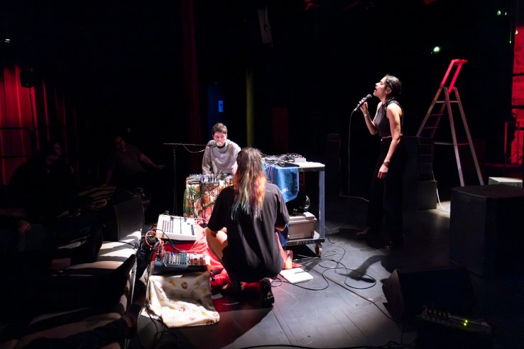 « Emma Souharce, Beatrice Beispiel, and Aya Metwalli navigate the complexities of languages and boundaries. From Egypt to Beirut to France to Biel/Bienne. Freedom needs the unforeseen and the guts to make your move when it occurs. Imagine a trio equipped with rhythm boxes, synths, and voices, primed by a patchwork manifesto of the current ppl they’re reading lines, ready to crash any continental breakfast state of mind. And imagine this as an emotional kind of support. »